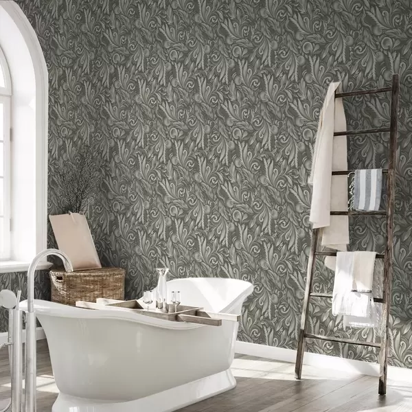 Шпалери Акантові завитки в оливково-бежевій гамі a00501