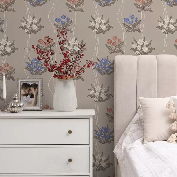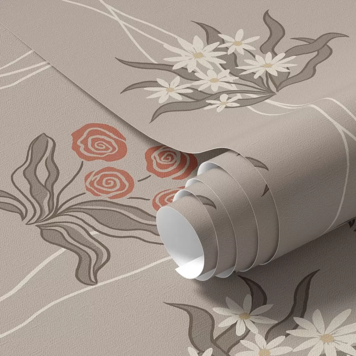 Шпалери Ретро квіти з хвилястими лініями на теплому бежевому тлі Nr. a00503