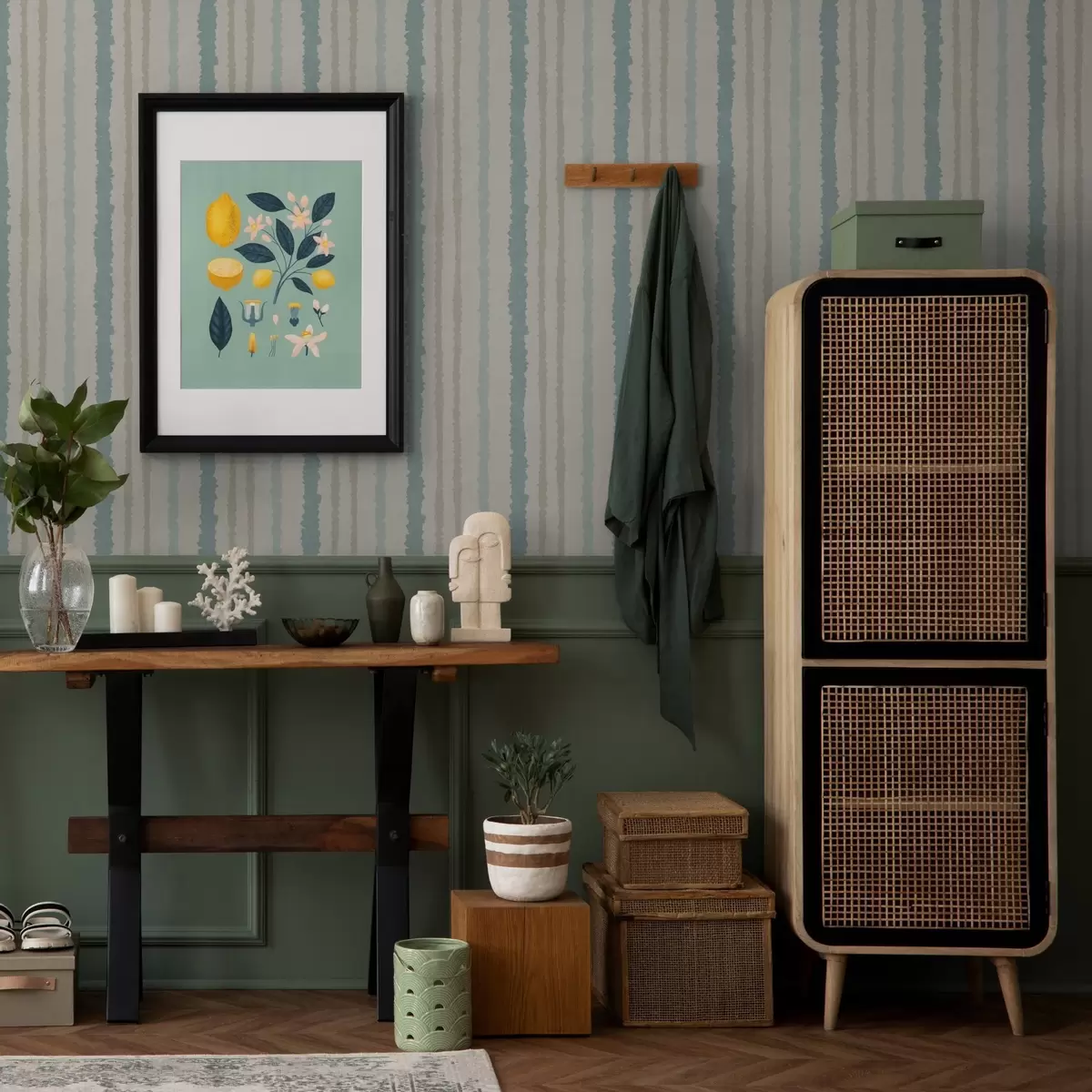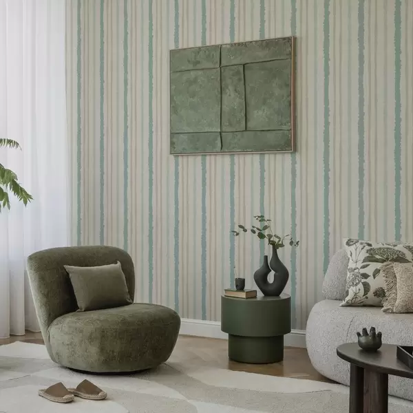 Шпалери Бірюзово-бежеві смужки з ефектом ручного розпису Nr. a00510v1
