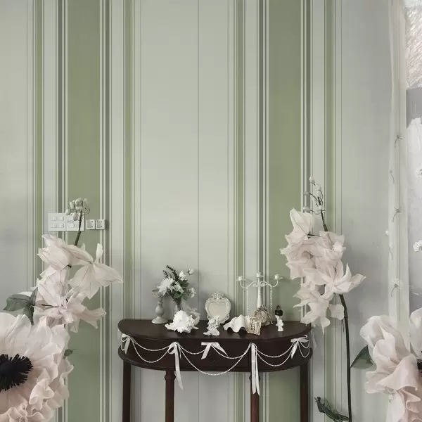Шпалери Кремове тло з широкою зеленою центральною смугою Nr. a00519