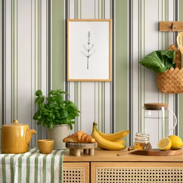 Шпалери Біле тло з поєднанням зелених і чорних смуг Nr. a00520
