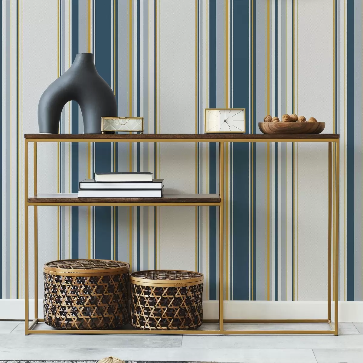 Шпалери Щільний візерунок з синіх і жовтих вертикальних смуг Nr. a00524