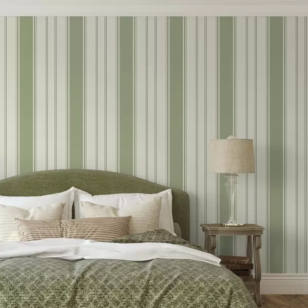 Шпалери Кремове тло з широкими світло-зеленими смугами Nr. a00561