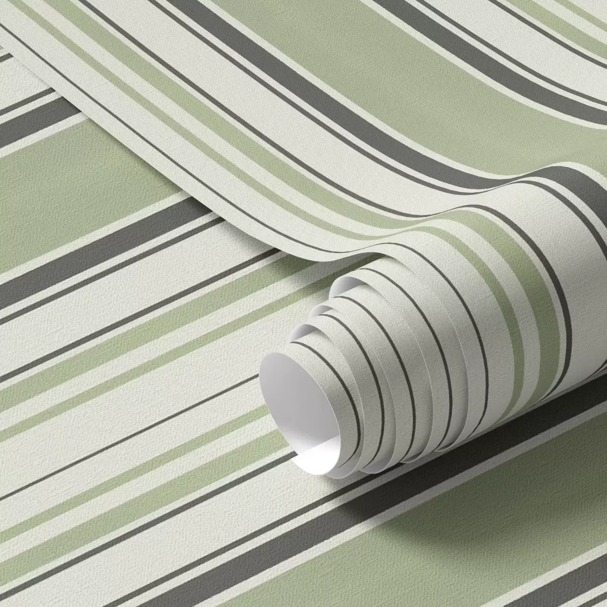 Шпалери Кремове тло з поєднанням зелених і чорних смуг Nr. a00563