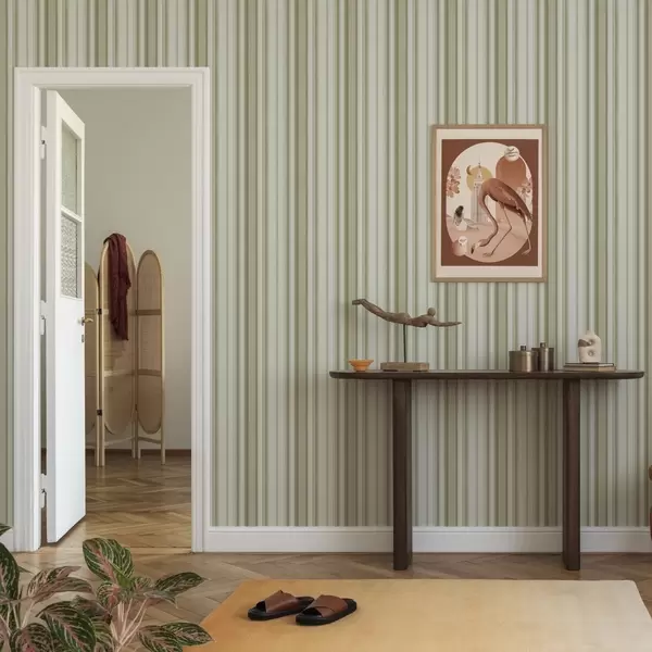 Шпалери Кремове тло з сіро-бежевими вертикальними смугами Nr. a00564