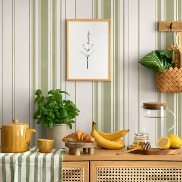 Шпалери Зелені вертикальні смуги різної ширини Nr. a00565