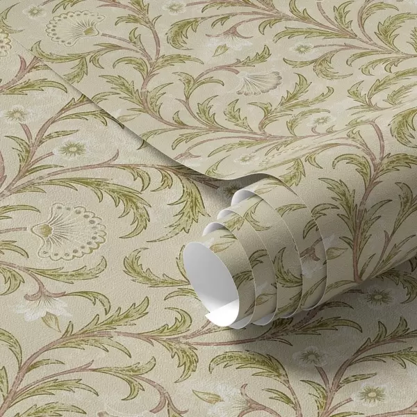 Шпалери Вінтажний орнамент із завитками та квітами, бежевий та оливковий Nr. a00574