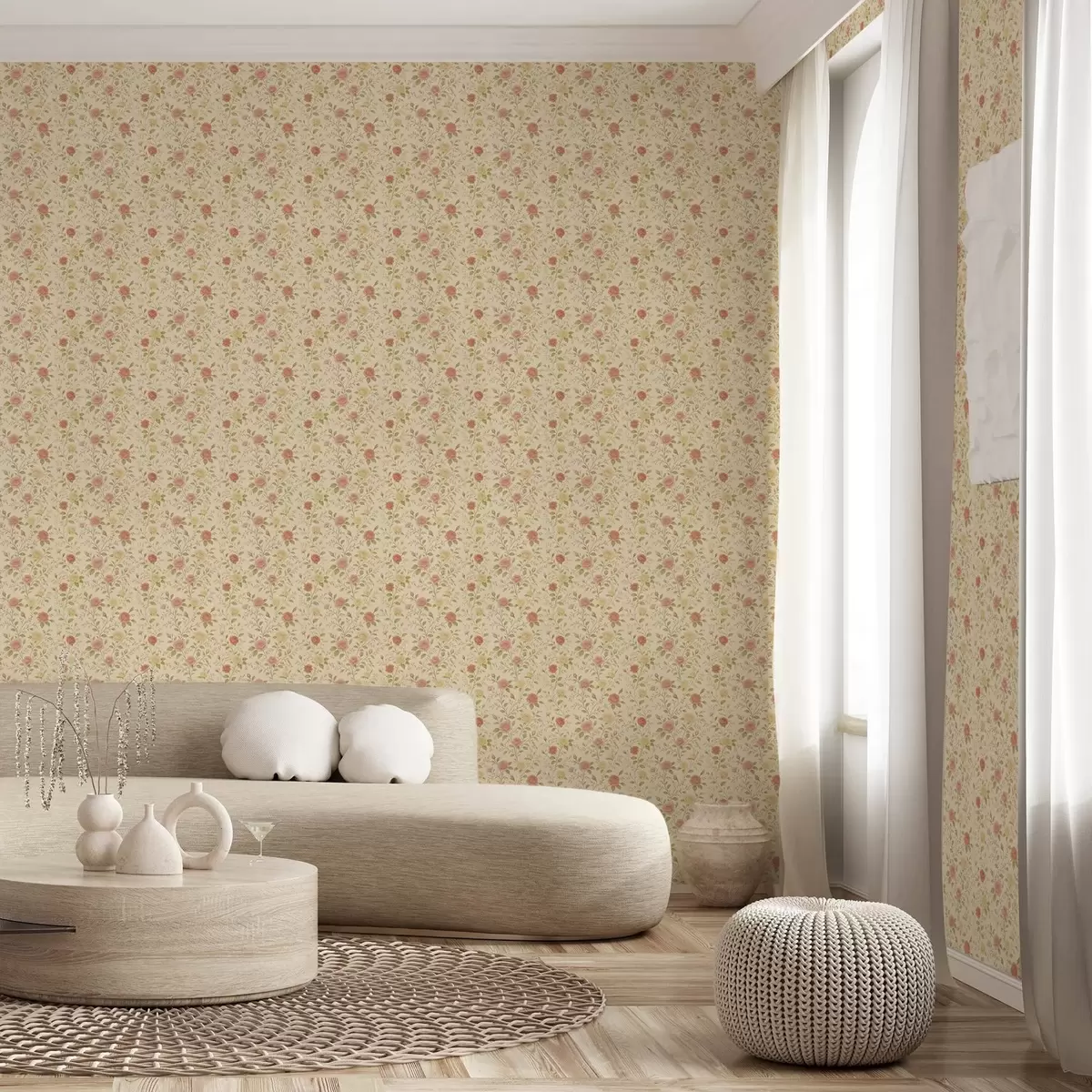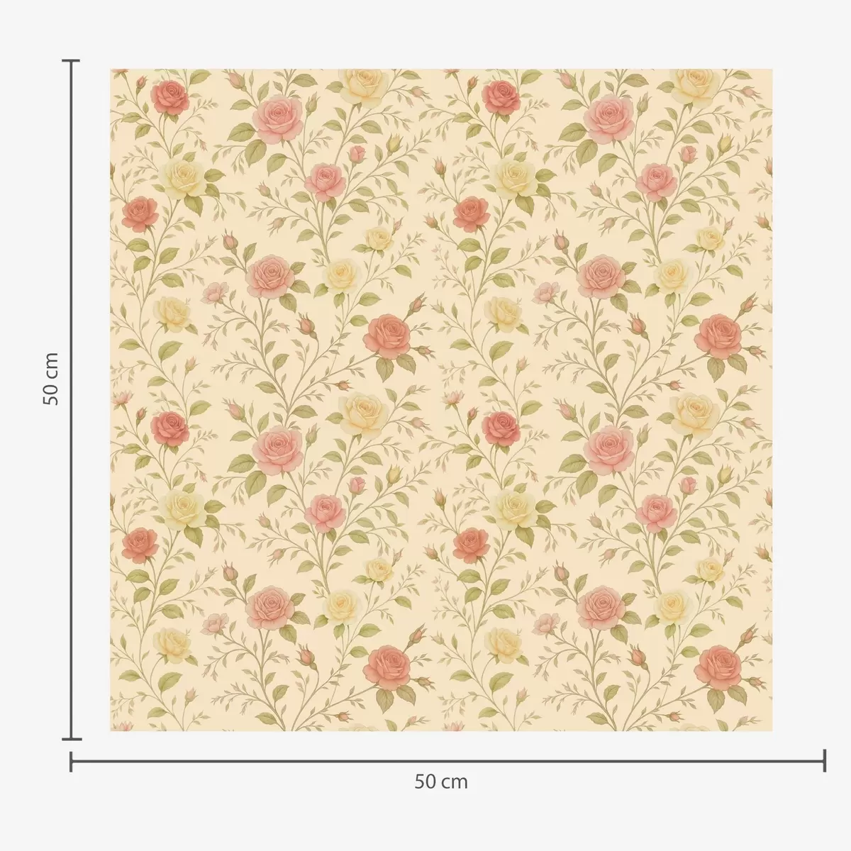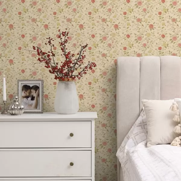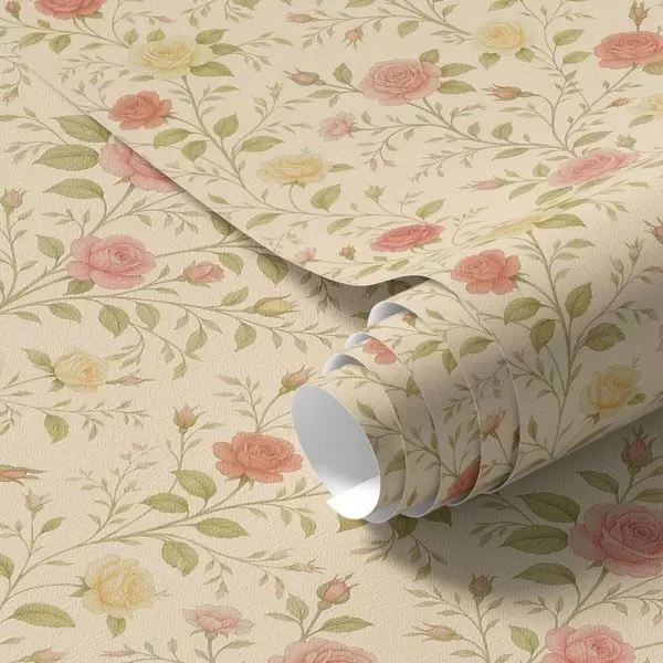 Шпалери Вінтажні троянди персикового та жовтого кольорів на кремовому тлі Nr. a00577