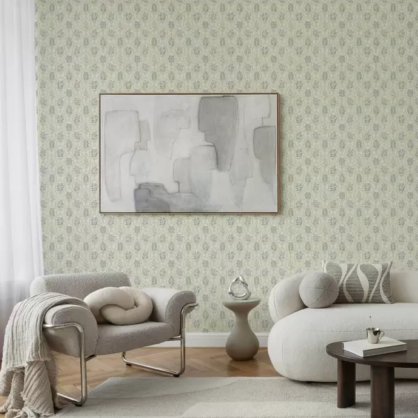 Шпалери Ботанічні медальйони в решітці, пастельні тони a00579