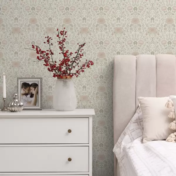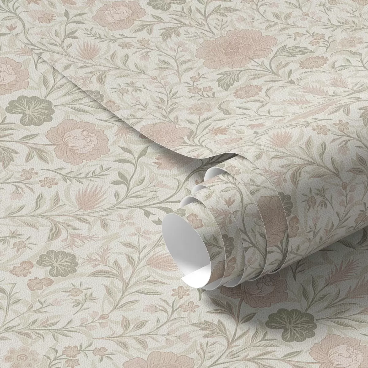 Шпалери Стиль Морріса: півонії та трави в ніжних бежево-зелених тонах Nr. a00581