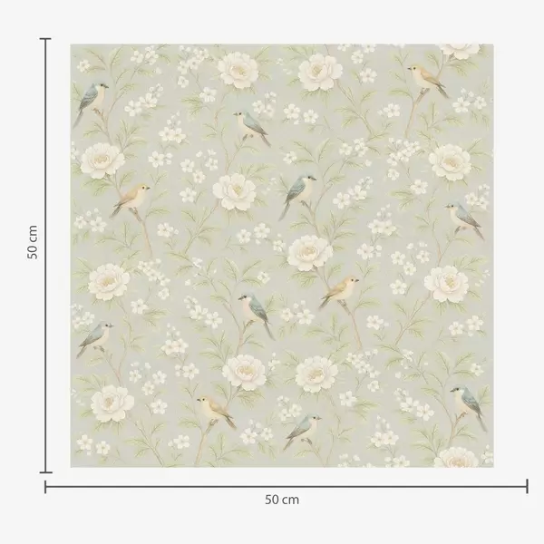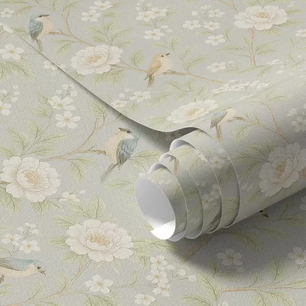 Шпалери Птахи серед білих квітів на сіро-зеленому тлі Nr. a00583