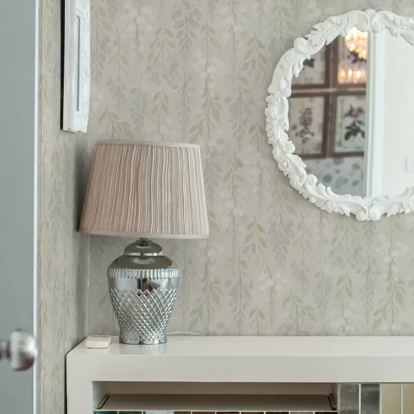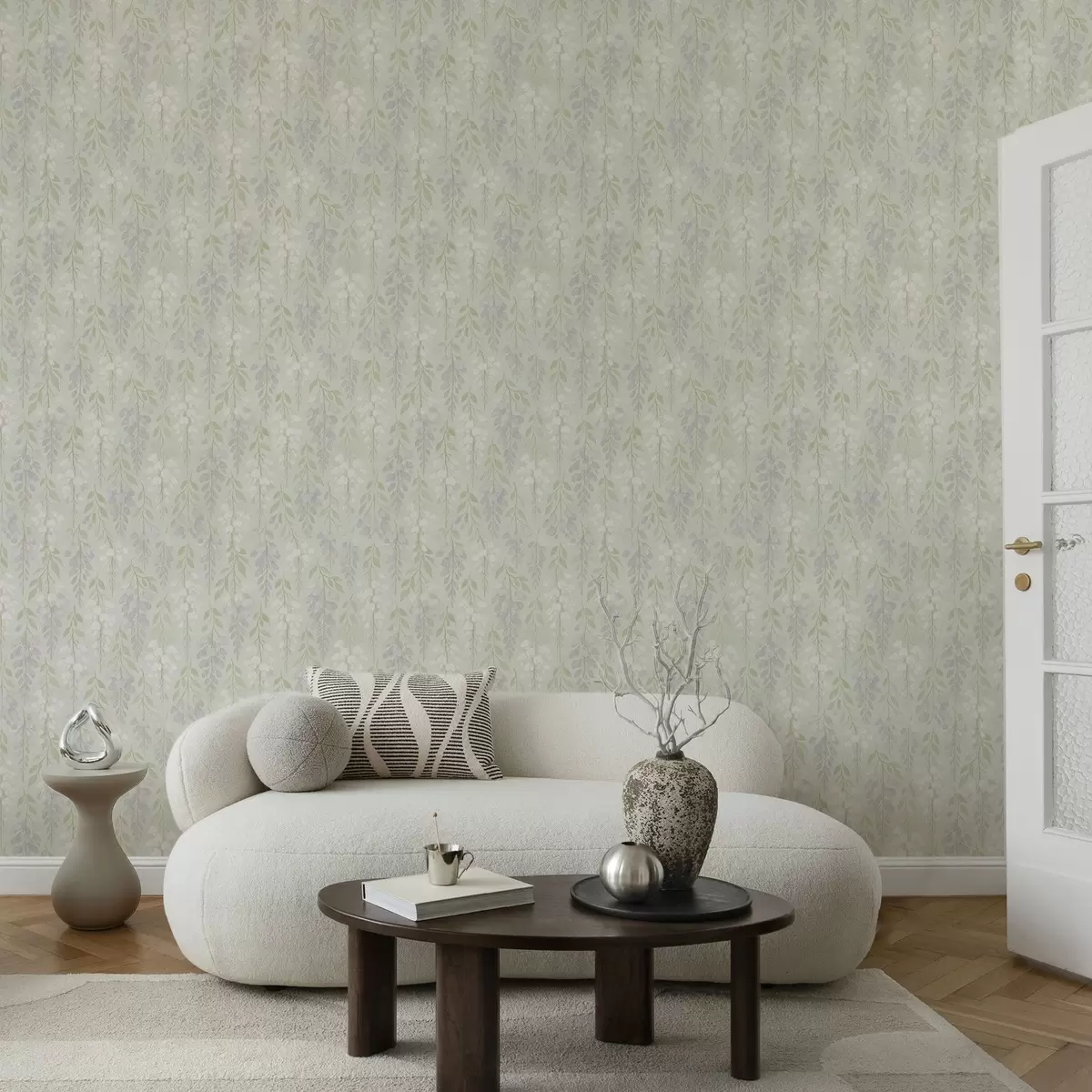 Шпалери Висяча лавандова гліцинія на м'ятно-зеленому тлі Nr. a00593