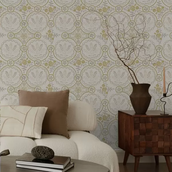 Шпалери Ретро орнамент з пшеницею та трояндами Nr. a00595