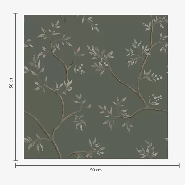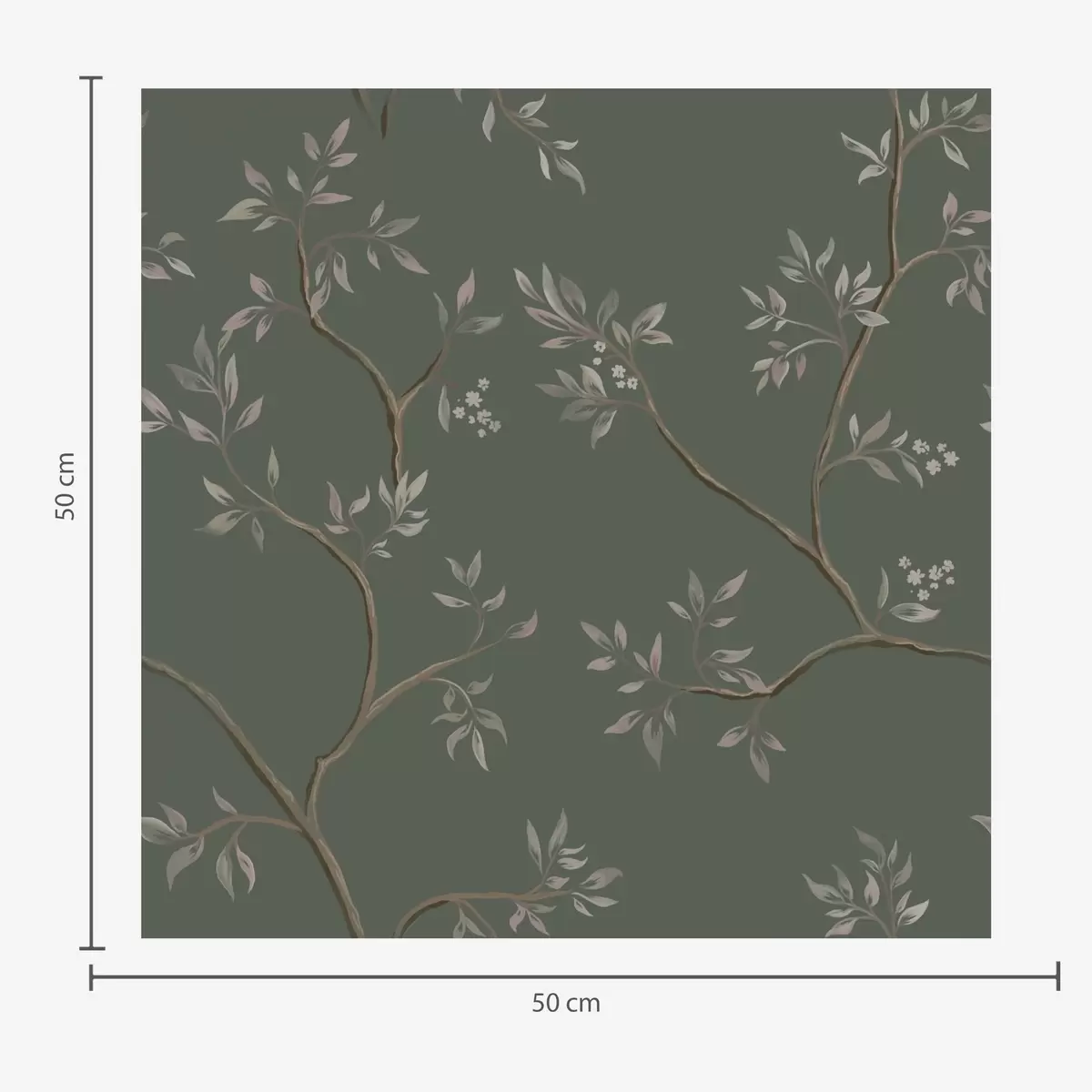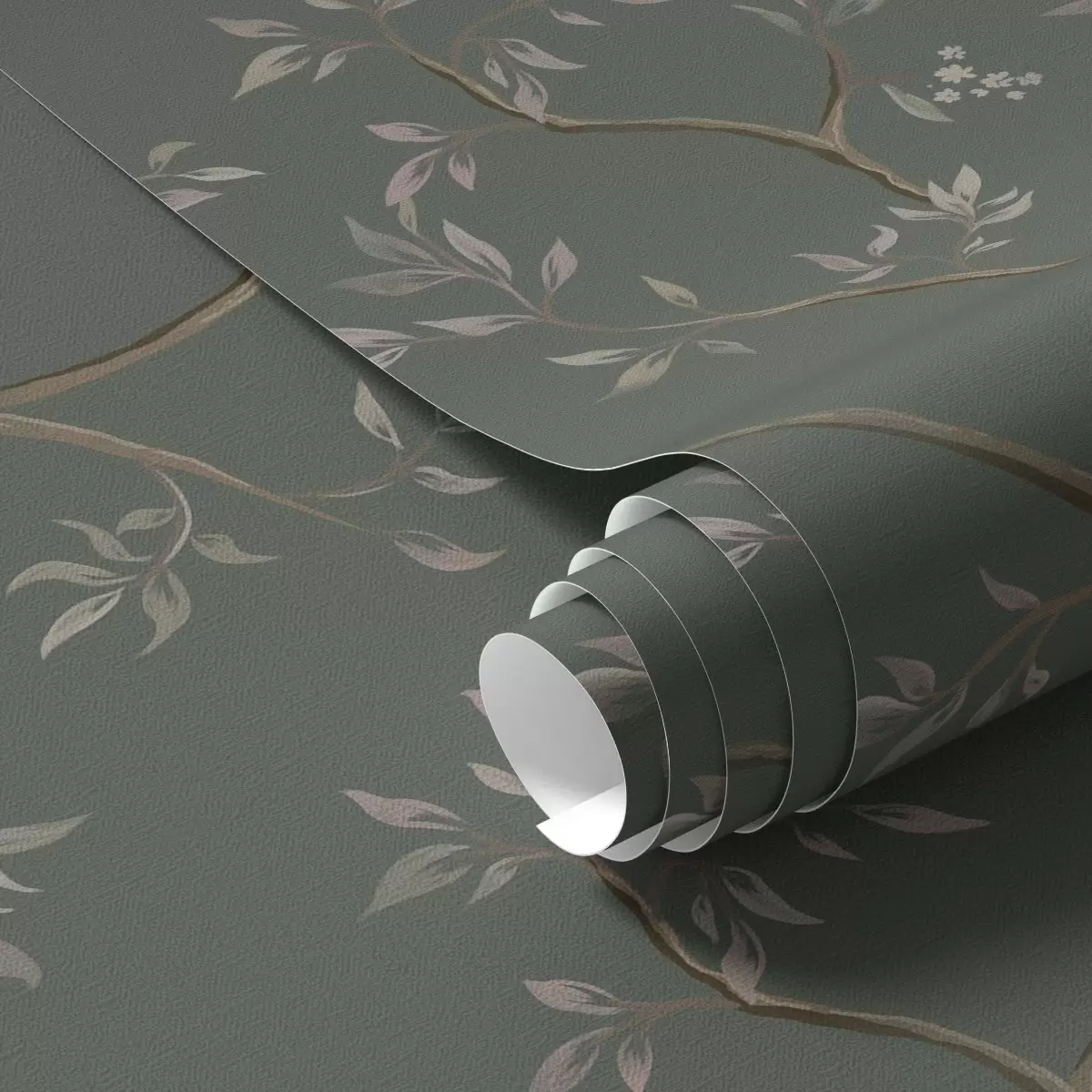 Шпалери Ніжні листяні гілки на темно-зеленому тлі Nr. a00597