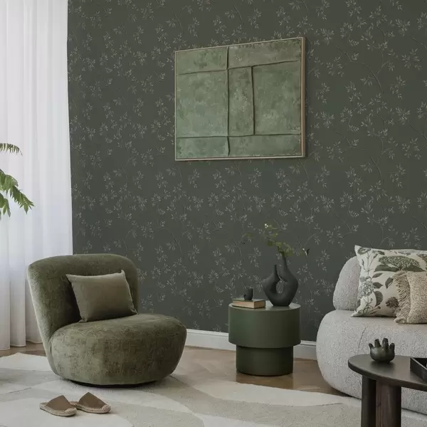 Шпалери Ніжні листяні гілки на темно-зеленому тлі Nr. a00597