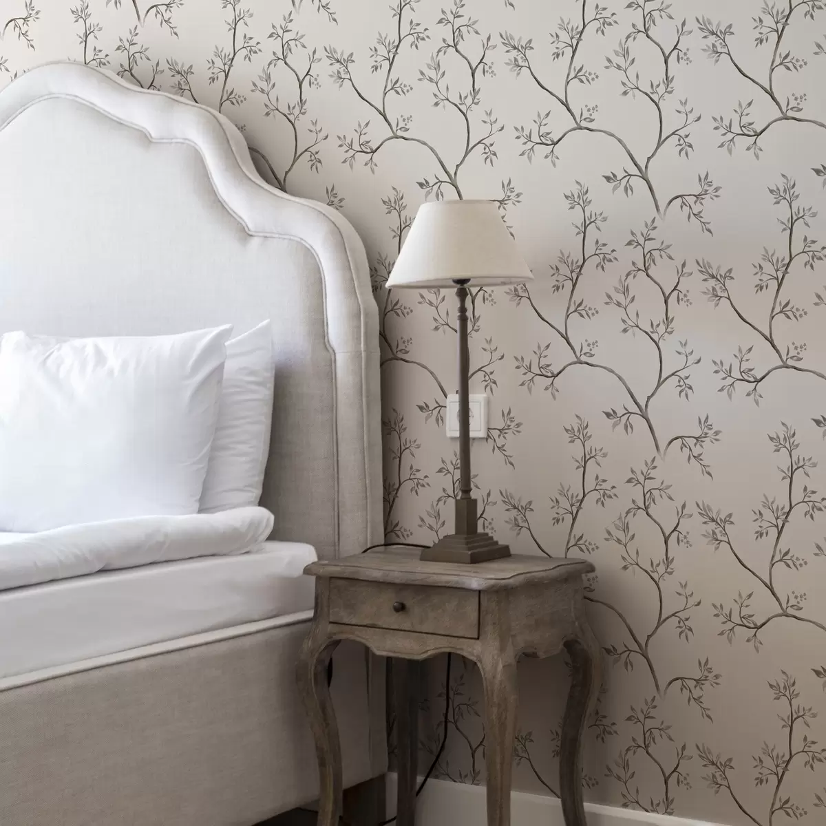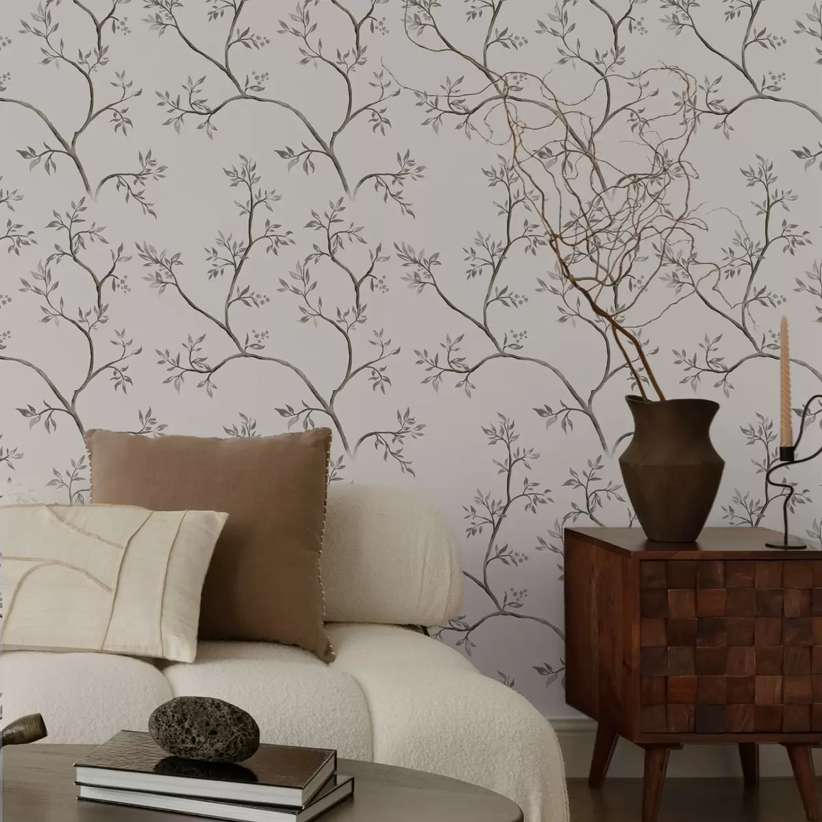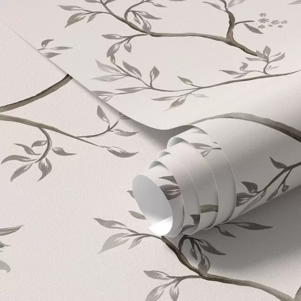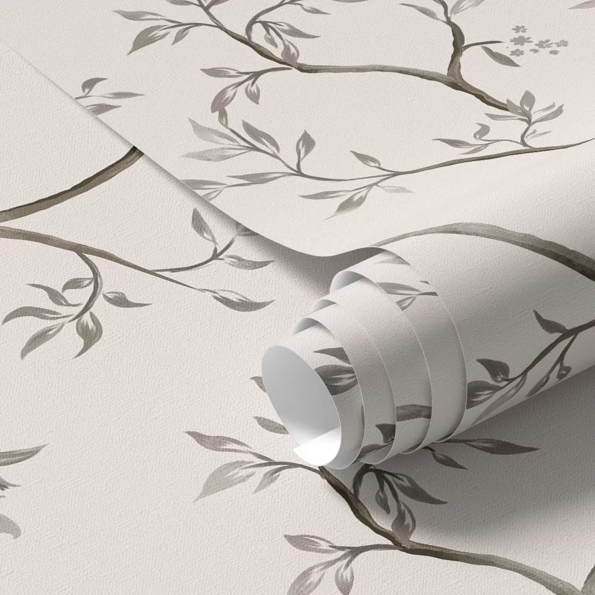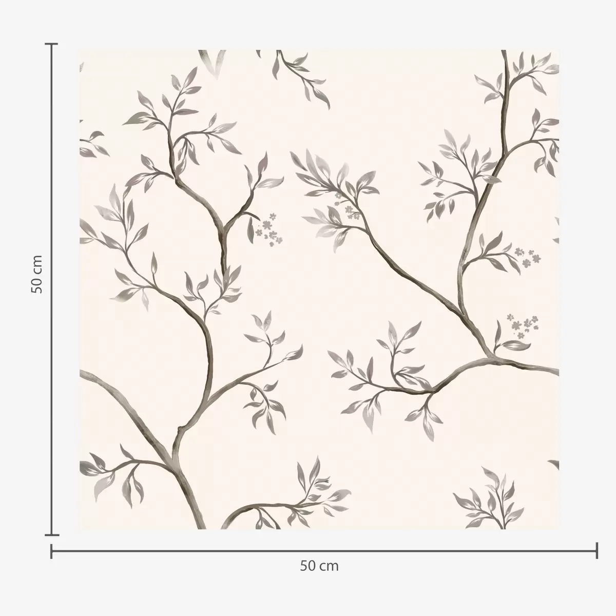 Шпалери Ніжні листяні гілки на теплому кремовому тлі Nr. a00597v1