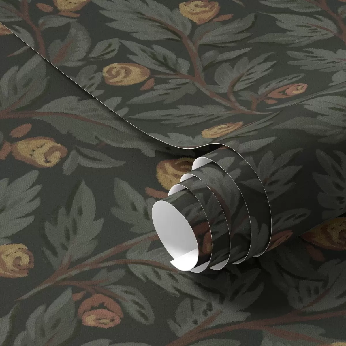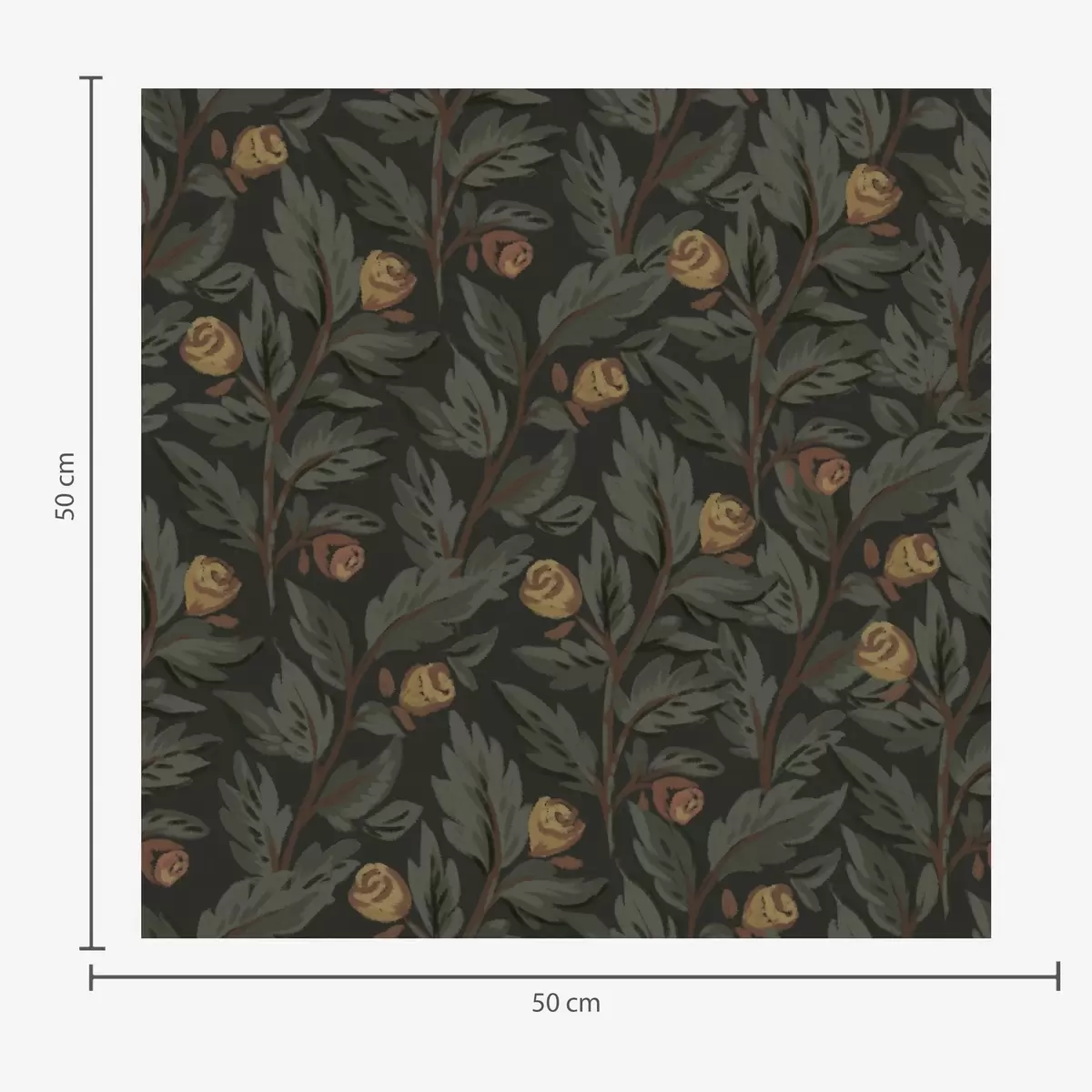 Шпалери Темний квітковий візерунок з жовтими бутонами та листям Nr. a00598