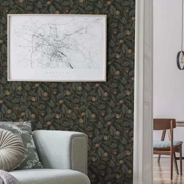 Шпалери Темний квітковий візерунок з жовтими бутонами та листям Nr. a00598