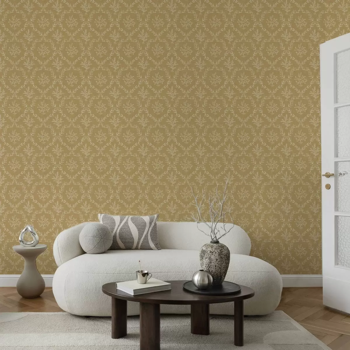 Шпалери Білі вінки з трав і квітів на гірчичному тлі Nr. a00599