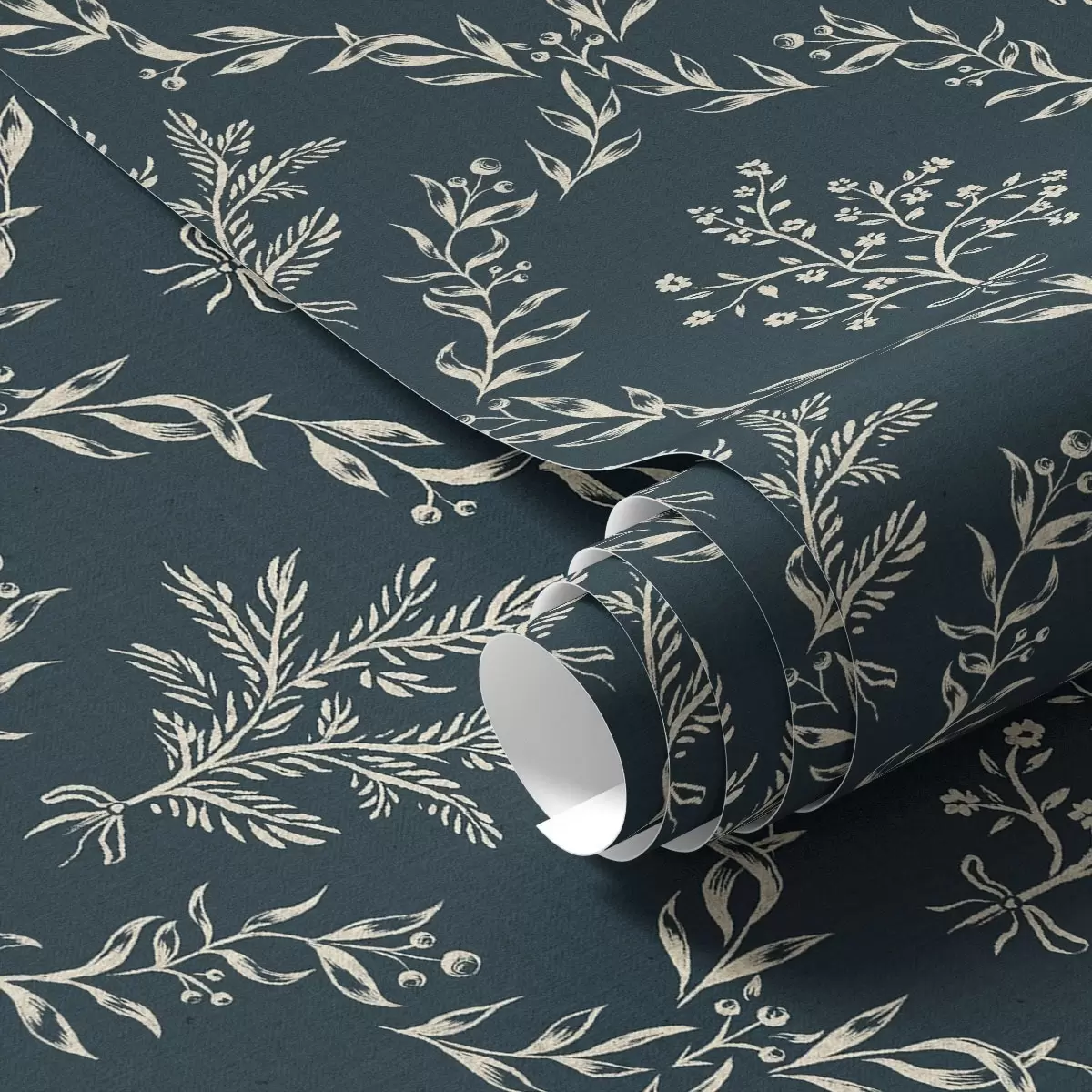 Шпалери Білі вінки з трав і квітів на темно-бірюзовому тлі Nr. a00599v2