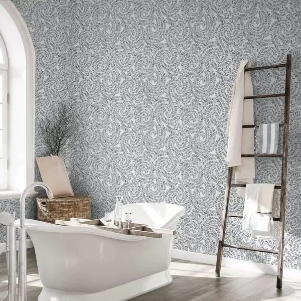Шпалери Листяні спіралі в прохолодних сіро-блакитних тонах a00602v1