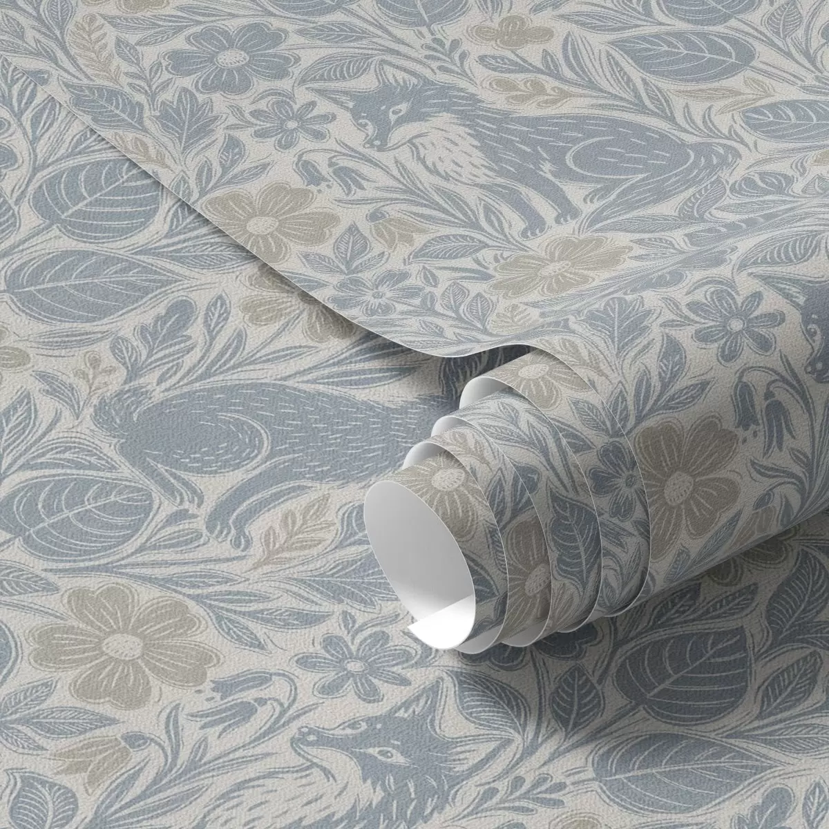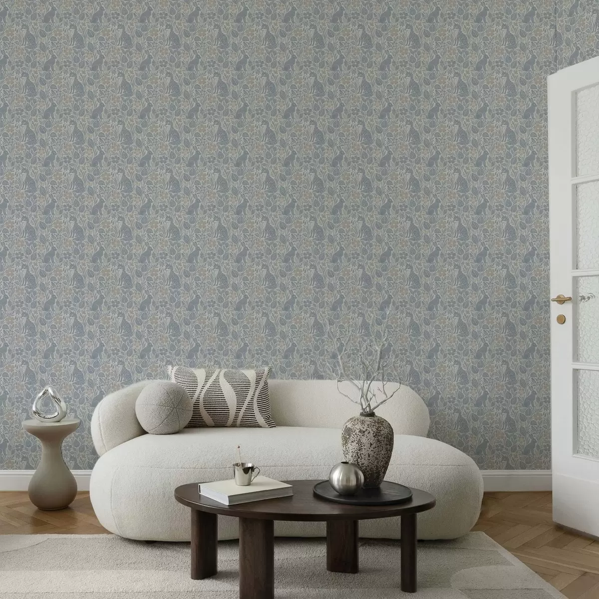 Шпалери Лісові тварини та квіти: лисиця та заєць у блакитних тонах Nr. a00613