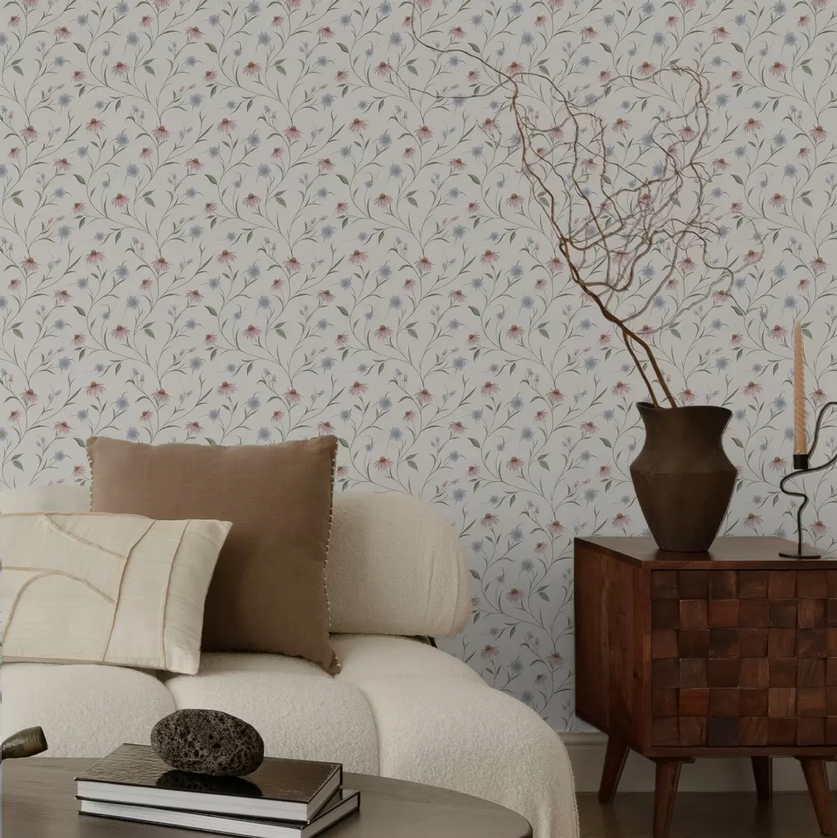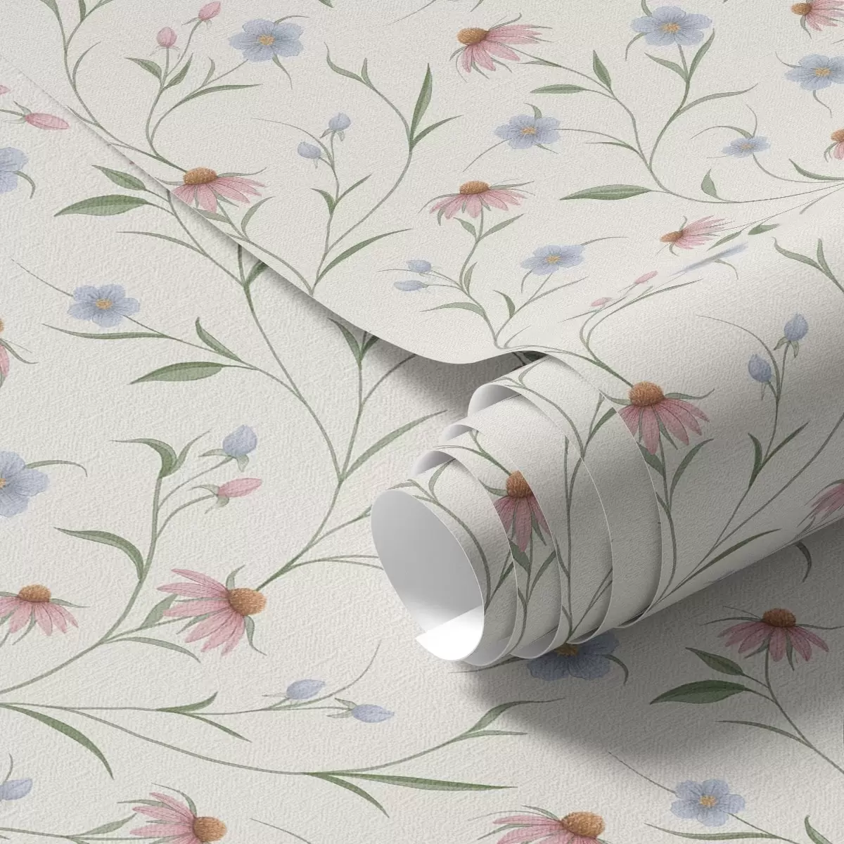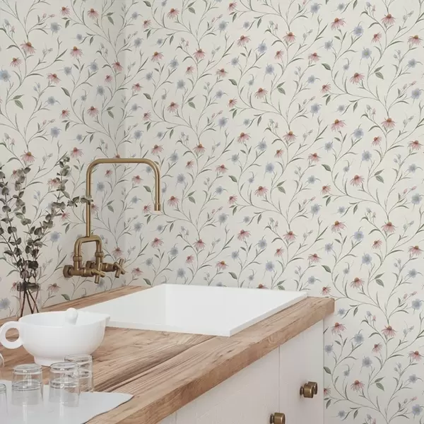 Шпалери Польові ромашки та ехінацея на кремовому тлі, легкість Nr. a00614