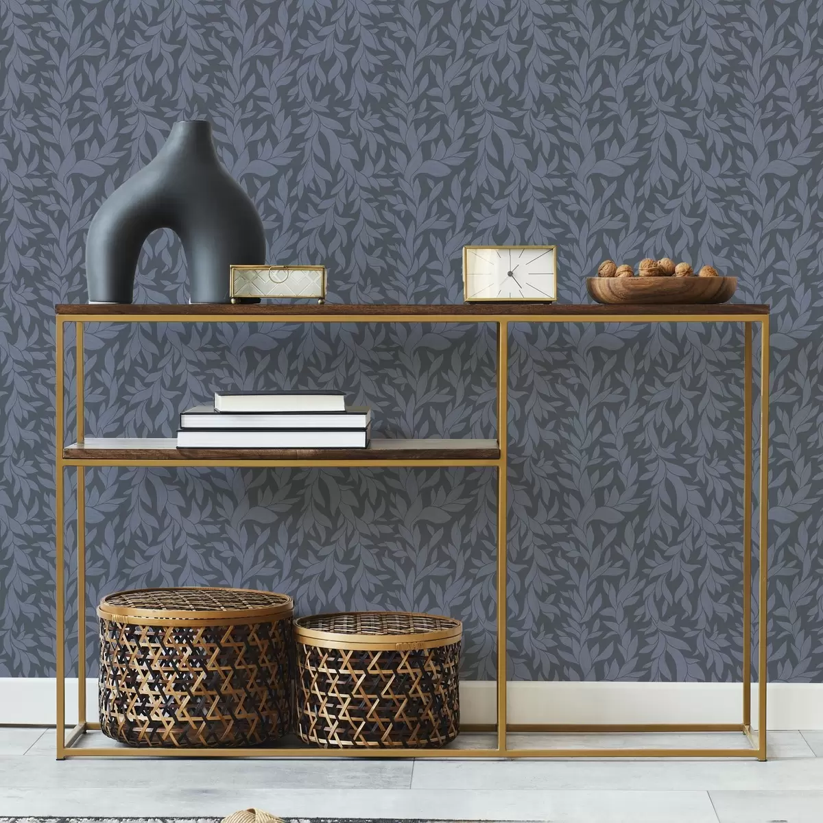 Шпалери Графітово-синій фон і сині листя, текстурований штрих Nr. a00616v2