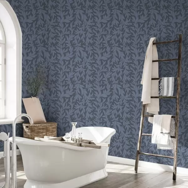 Шпалери Графітово-синій фон і сині листя, текстурований штрих Nr. a00616v2