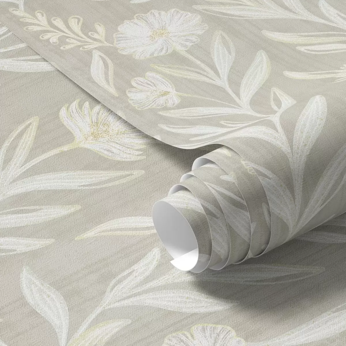 Шпалери Легкі трави та квіти на бежевому тлі, схематичні лінії Nr. a00618