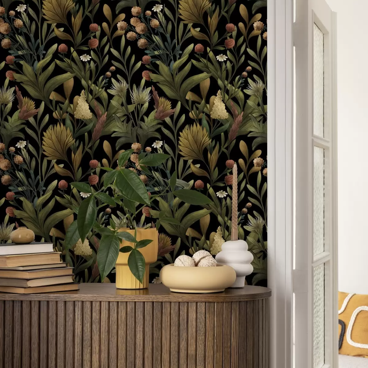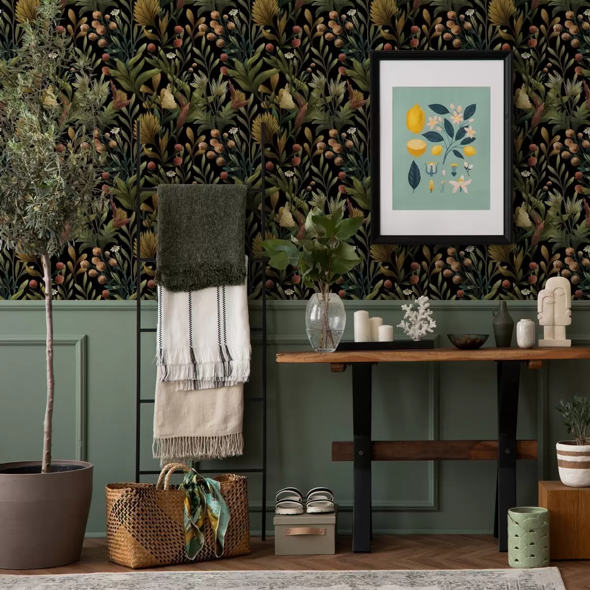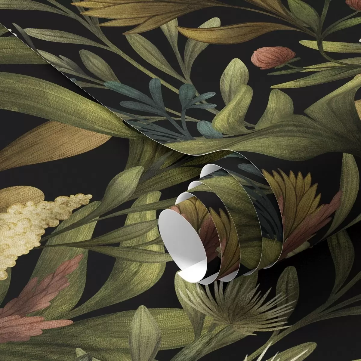 Шпалери Ботанічний сад на чорному тлі, тепла осіння палітра a00619