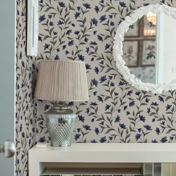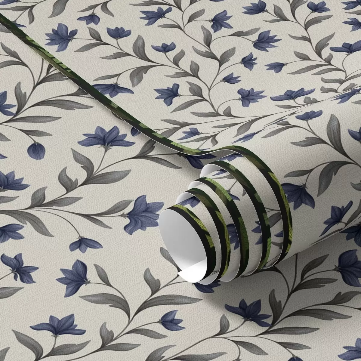Шпалери Дзвіночки та сіра зелень на світлому тлі Nr. a00622v1