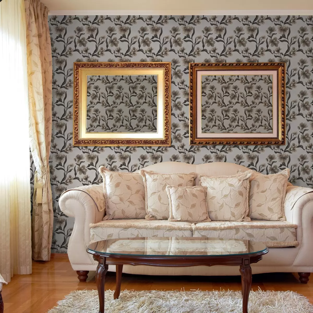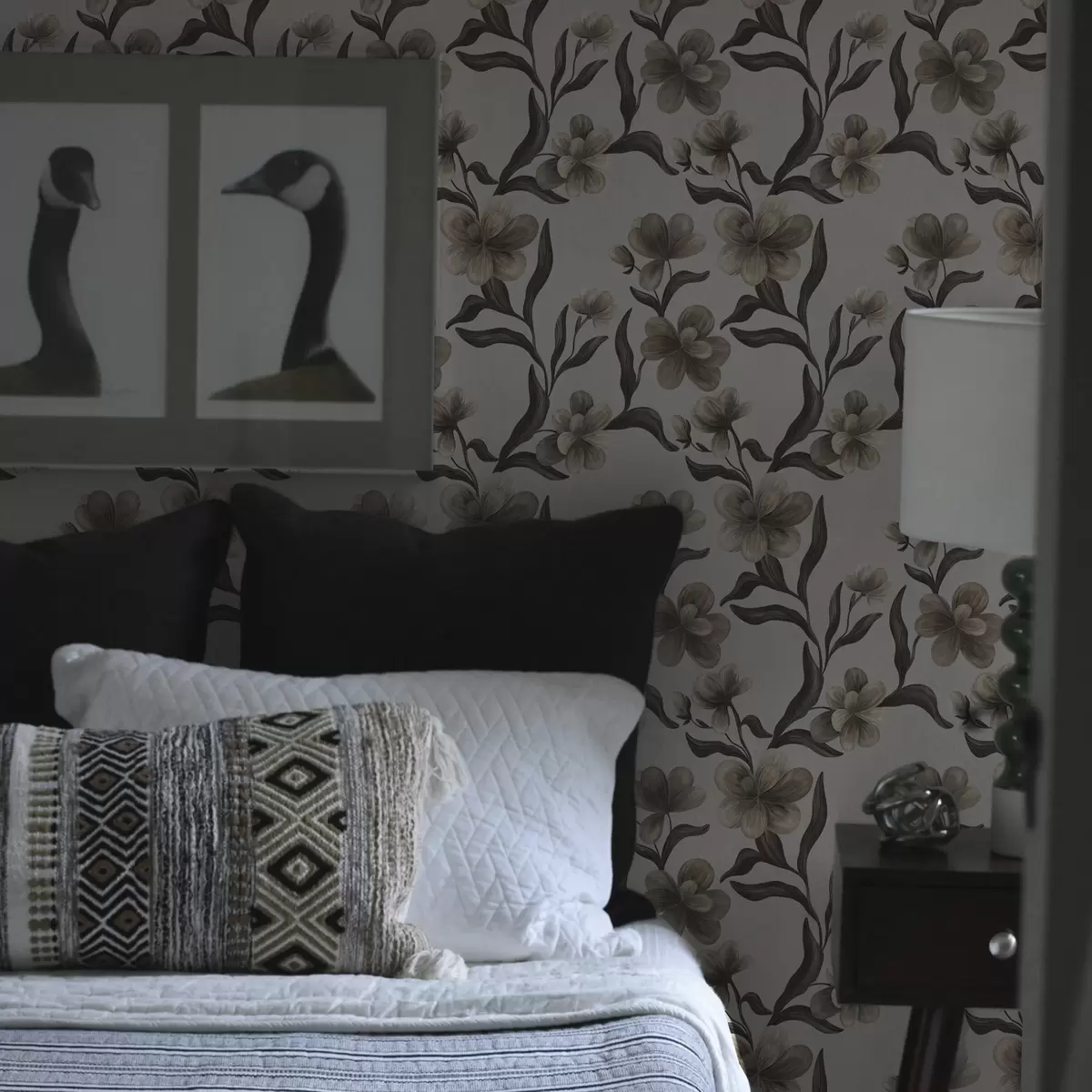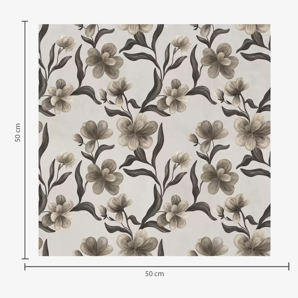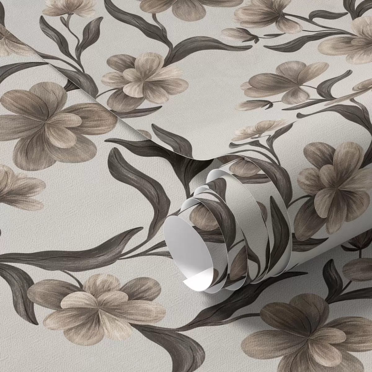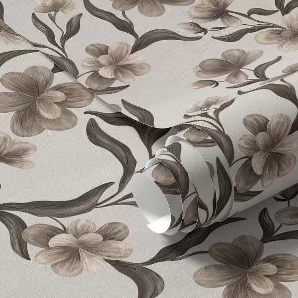 Шпалери Бежеві квіти і темні гілки на світло-сірому тлі Nr. a00626v1