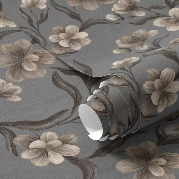Шпалери Бежеві квіти на графітово-сірому тлі Nr. a00626v4