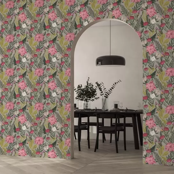 Шпалери Пишні рожеві та кремові квіти на сірому тлі, імпасто-текстура Nr. a00629
