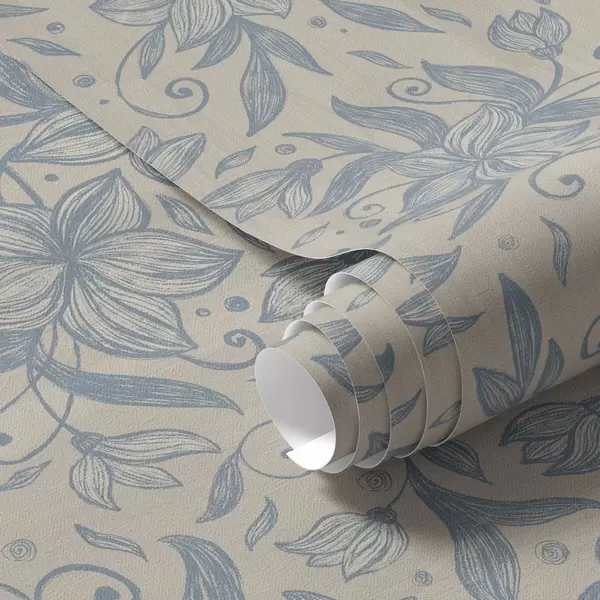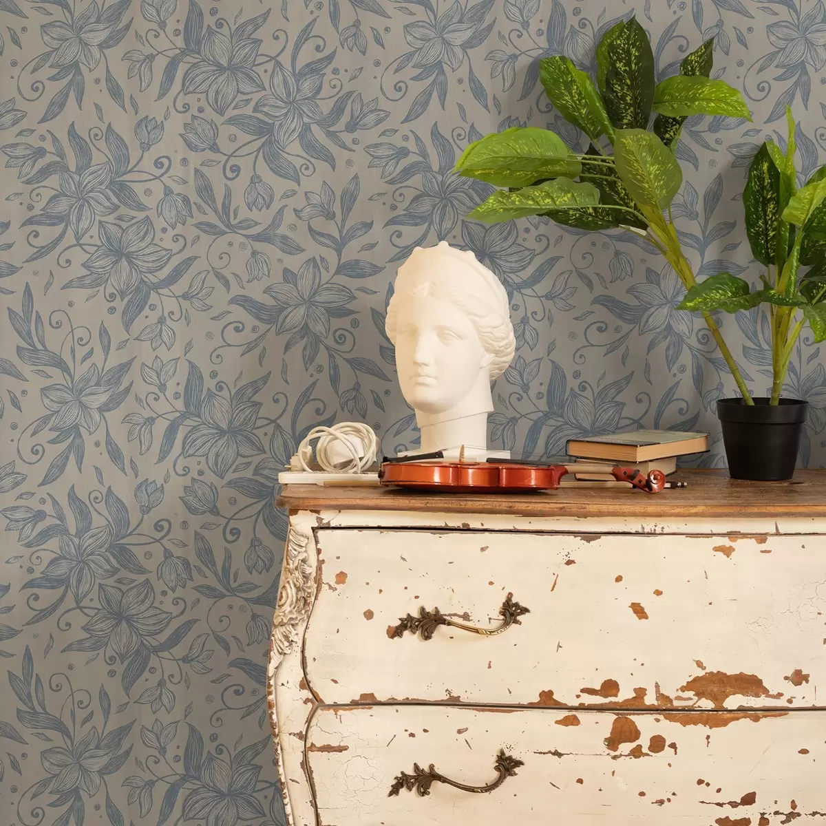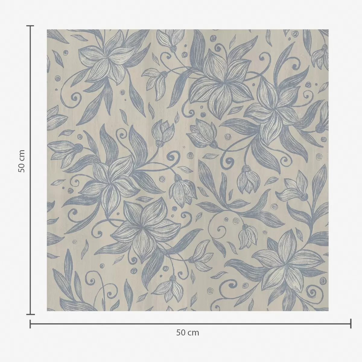 Шпалери Синій лінійний квітковий візерунок на теплій бежевій основі Nr. a00630v2