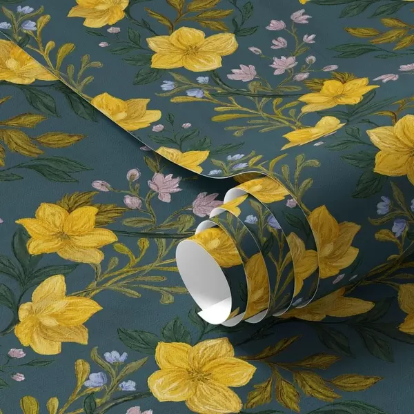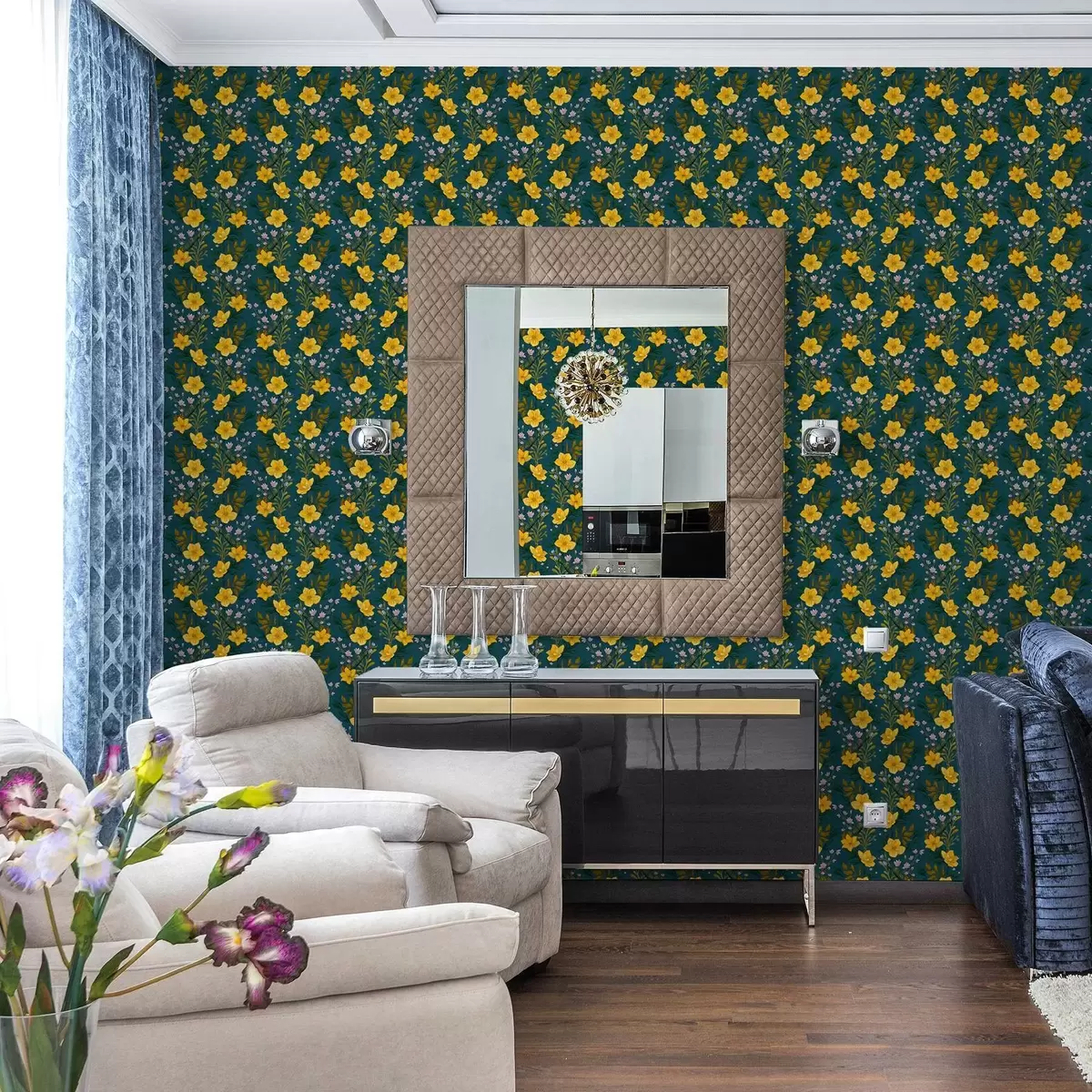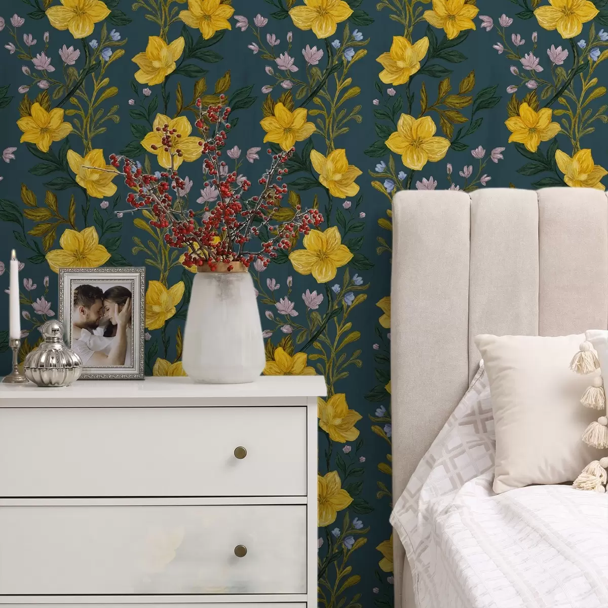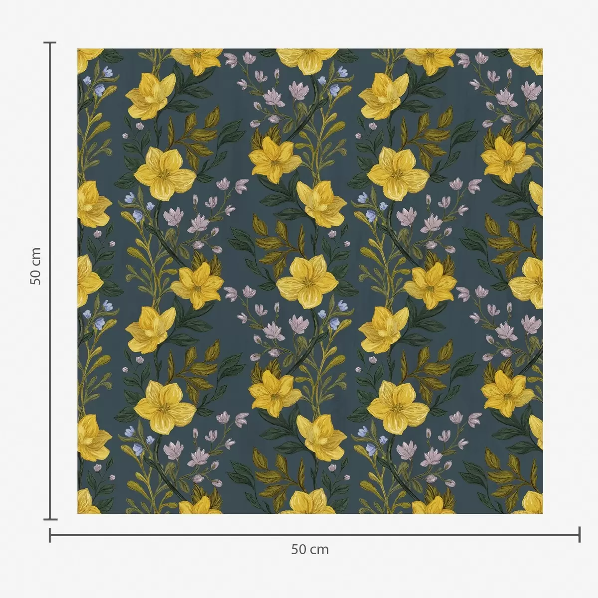 Шпалери Жовті квіти у вертикальних гірляндах на темно-синьому тлі Nr. a00632v2
