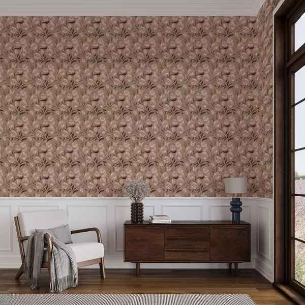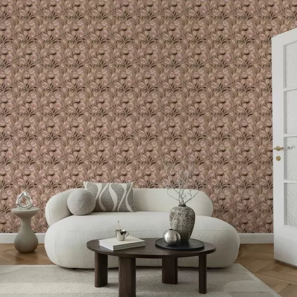 Шпалери Рожеві квіти та метелики на теплому коричневому тлі Nr. a00633v1