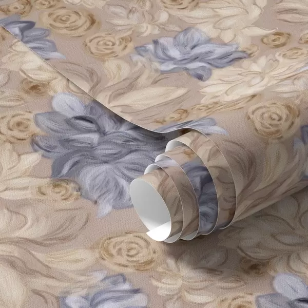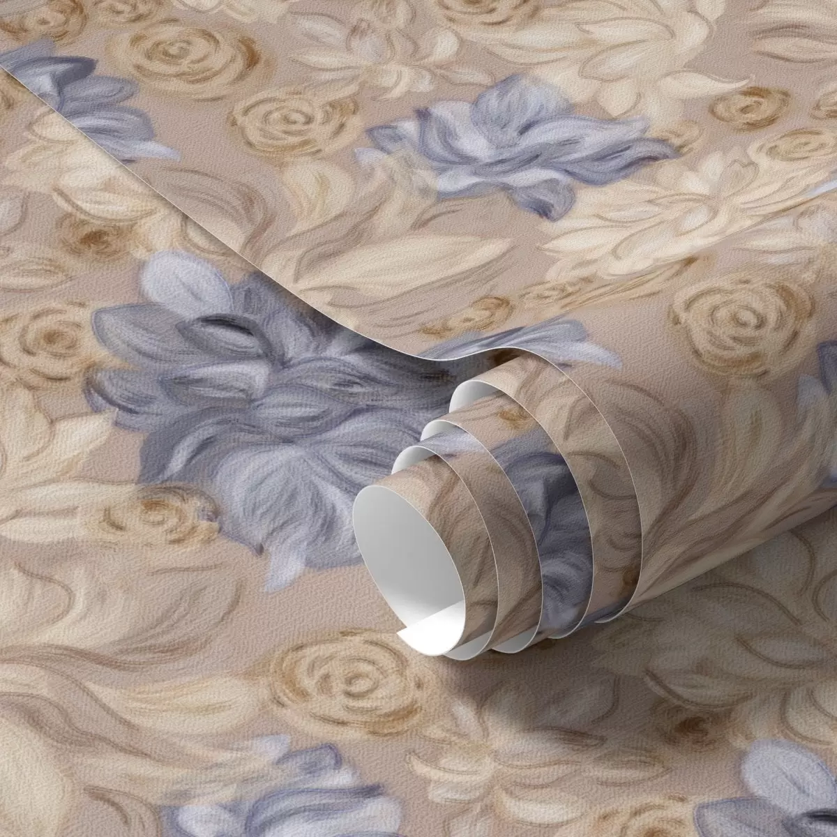 Шпалери Соковитий крем і блакитні квіти в пастельній гамі Nr. a00634
