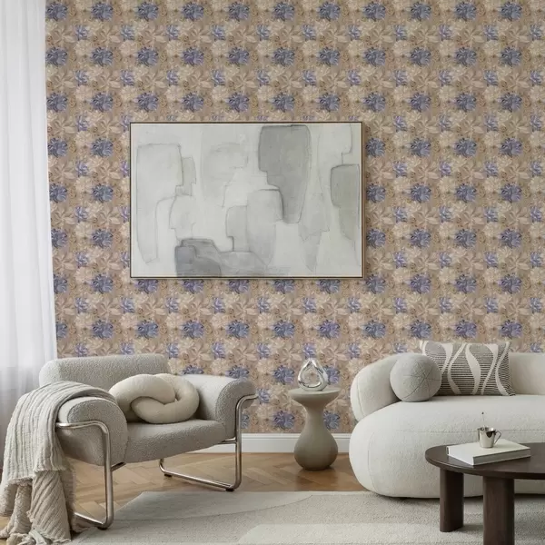 Шпалери Соковитий крем і блакитні квіти в пастельній гамі Nr. a00634