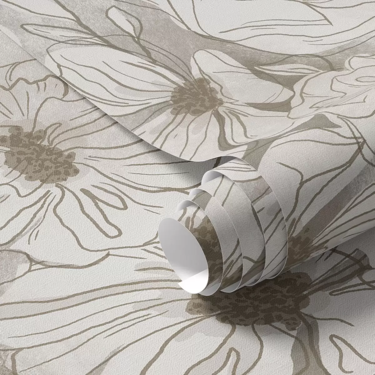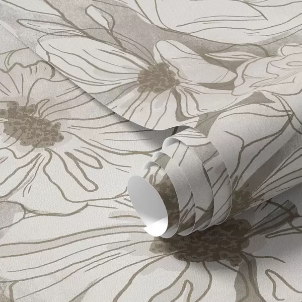 Шпалери Лінійні квіти в монохромній бежево-сірій палітрі a00636