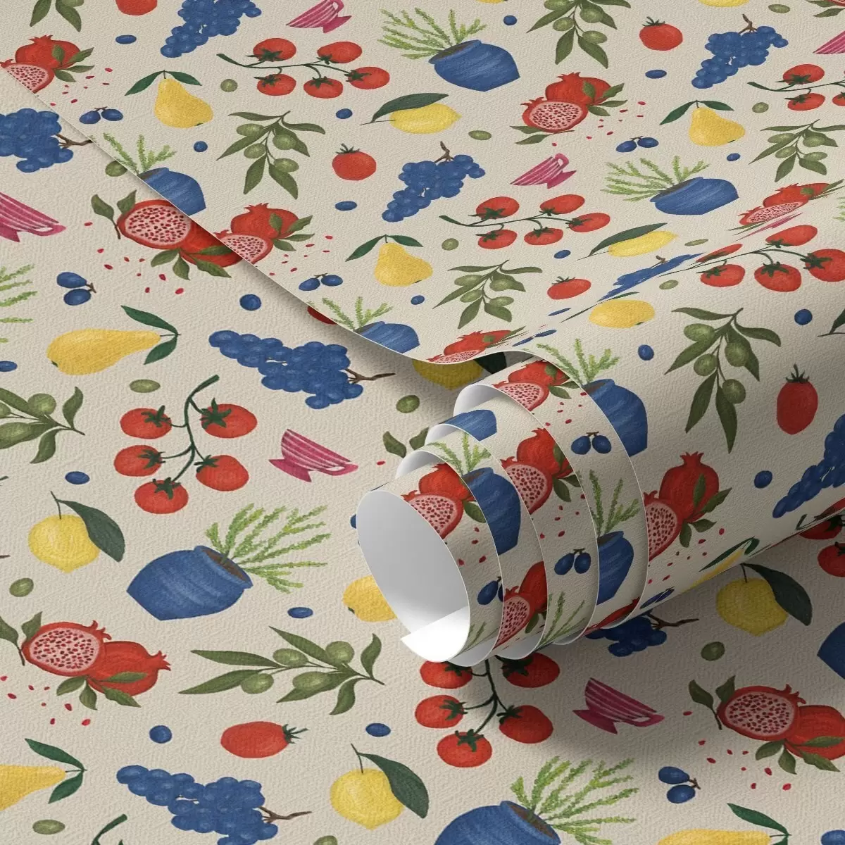 Шпалери Яскравий візерунок з фруктами, гілками та вазами Nr. a00637