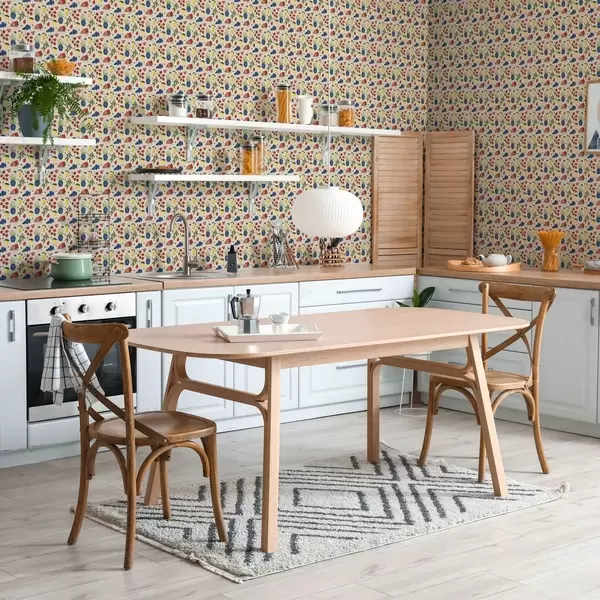 Шпалери Яскравий візерунок з фруктами, гілками та вазами Nr. a00637