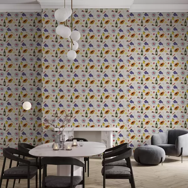 Шпалери Кухонний принт з фруктами, склянками та тарілками Nr. a00638