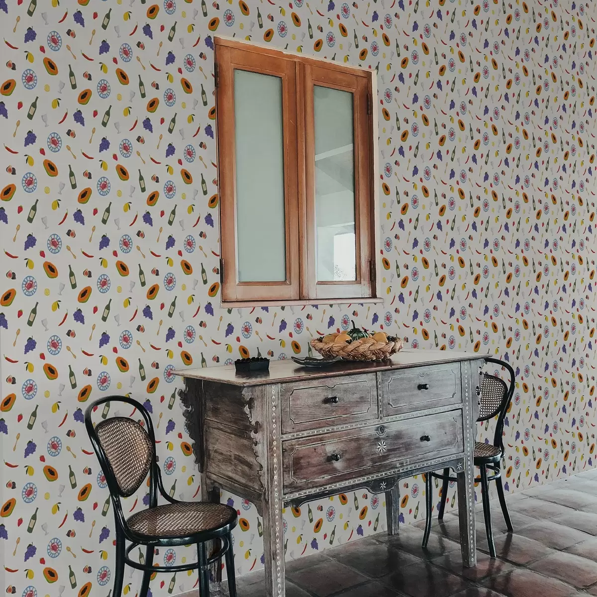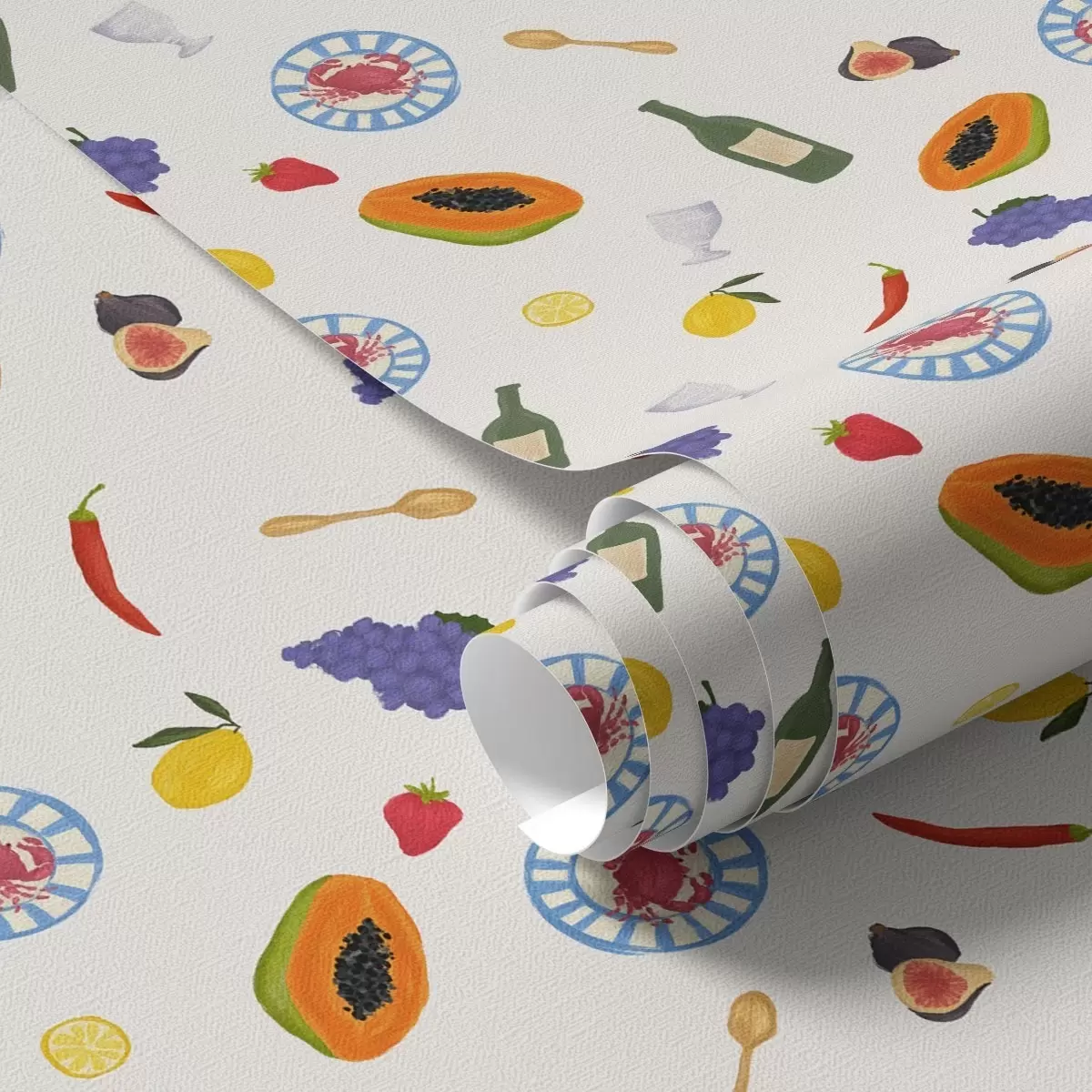 Шпалери Фрукти, вино та спеції на світлому тлі Nr. a00639