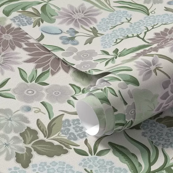 Шпалери Пастельні квіти та листя в м'ятно-блакитній палітрі Nr. a00642