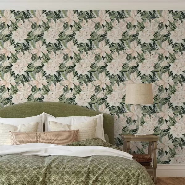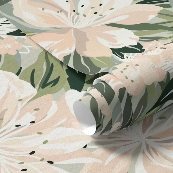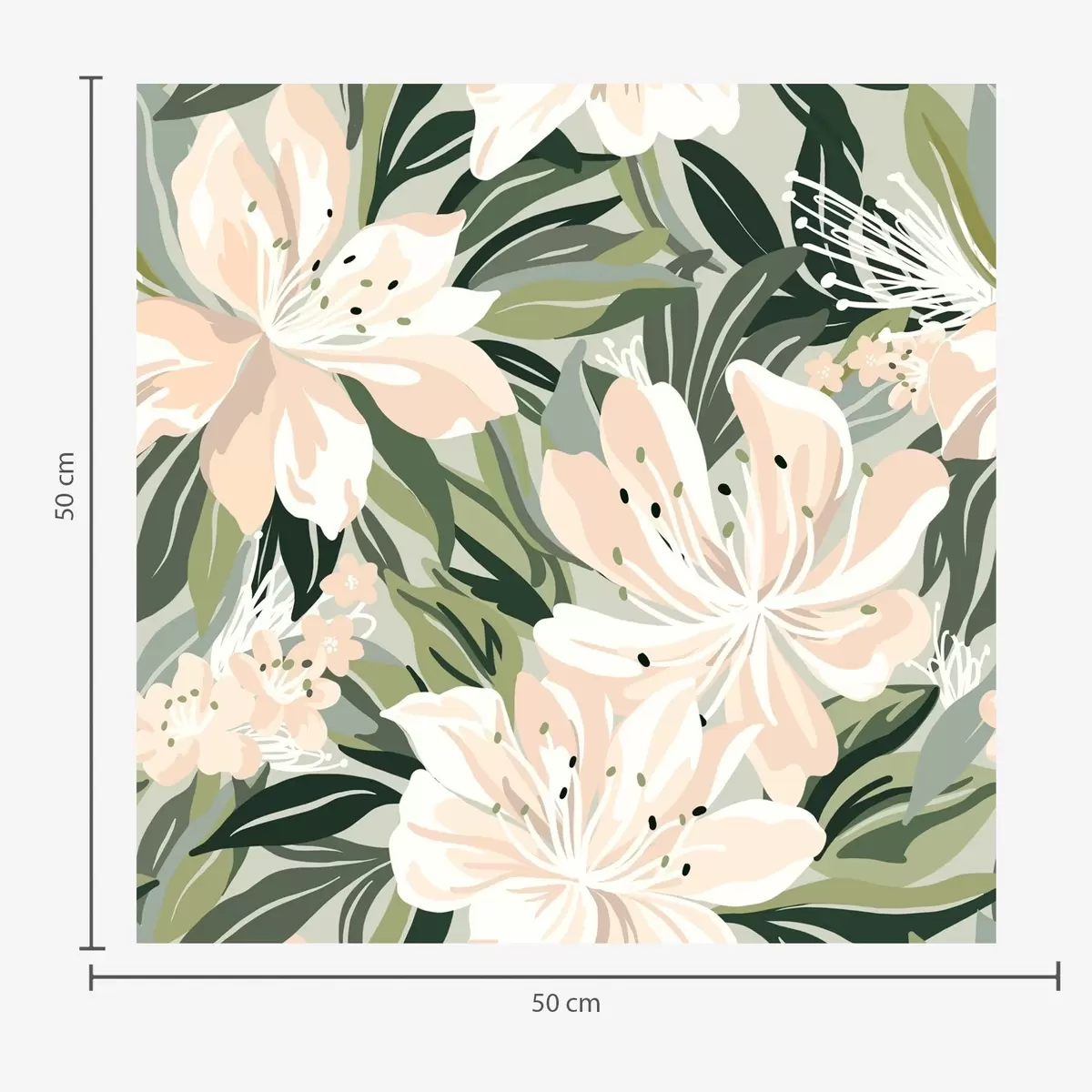 Шпалери Великі кремові квіти на світло-зеленому тлі Nr. a00646