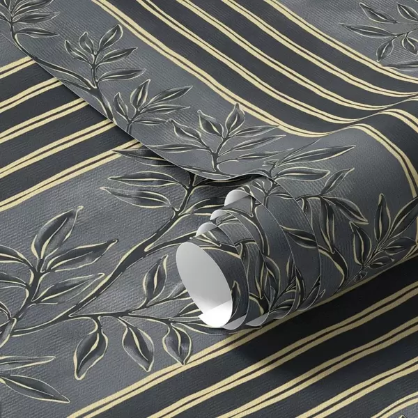 Шпалери Вертикальні смуги з рослинними візерунками в темних тонах Nr. a00648