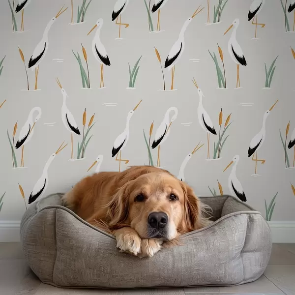 Шпалери Чаплі серед очерету на світло-сірому тлі Nr. a00650