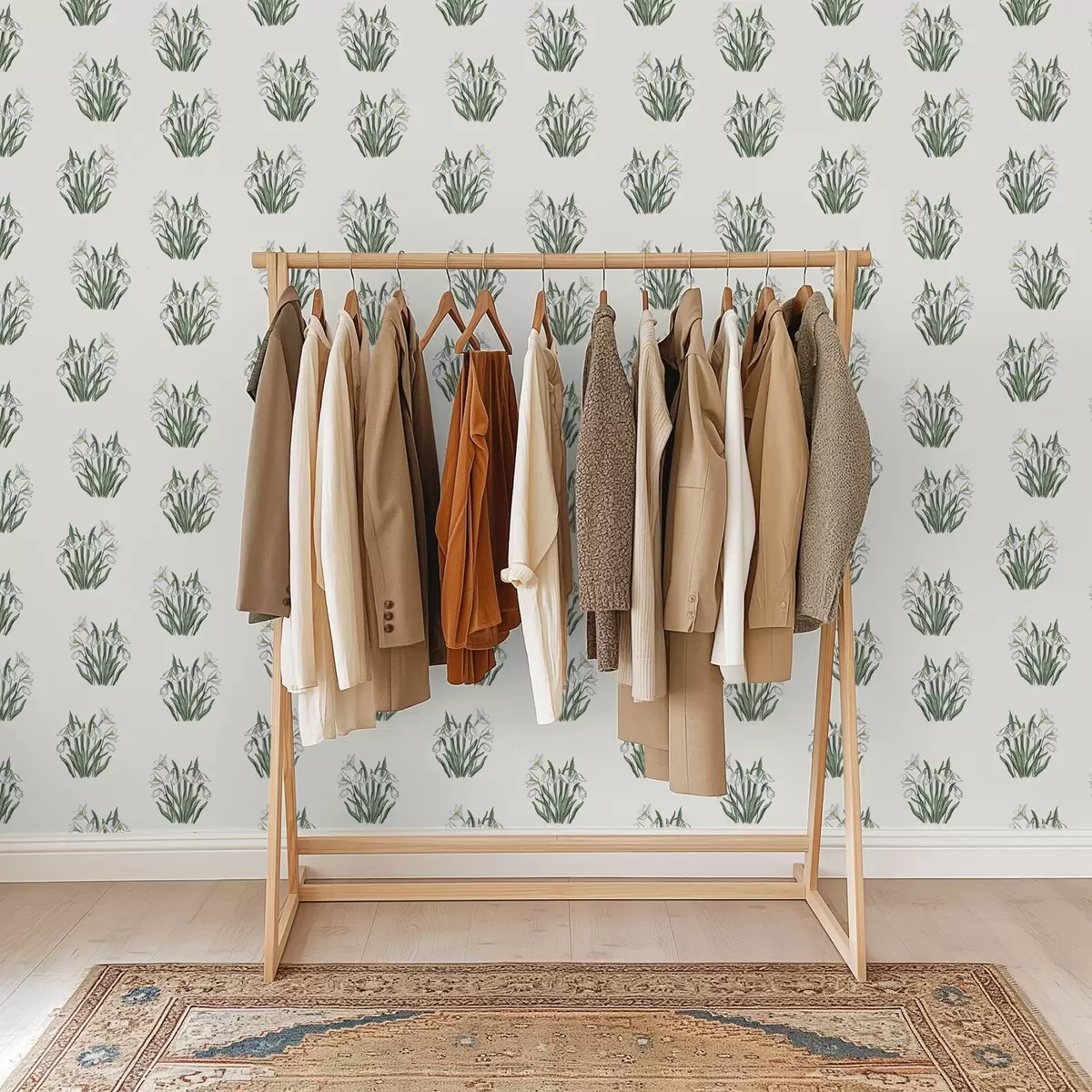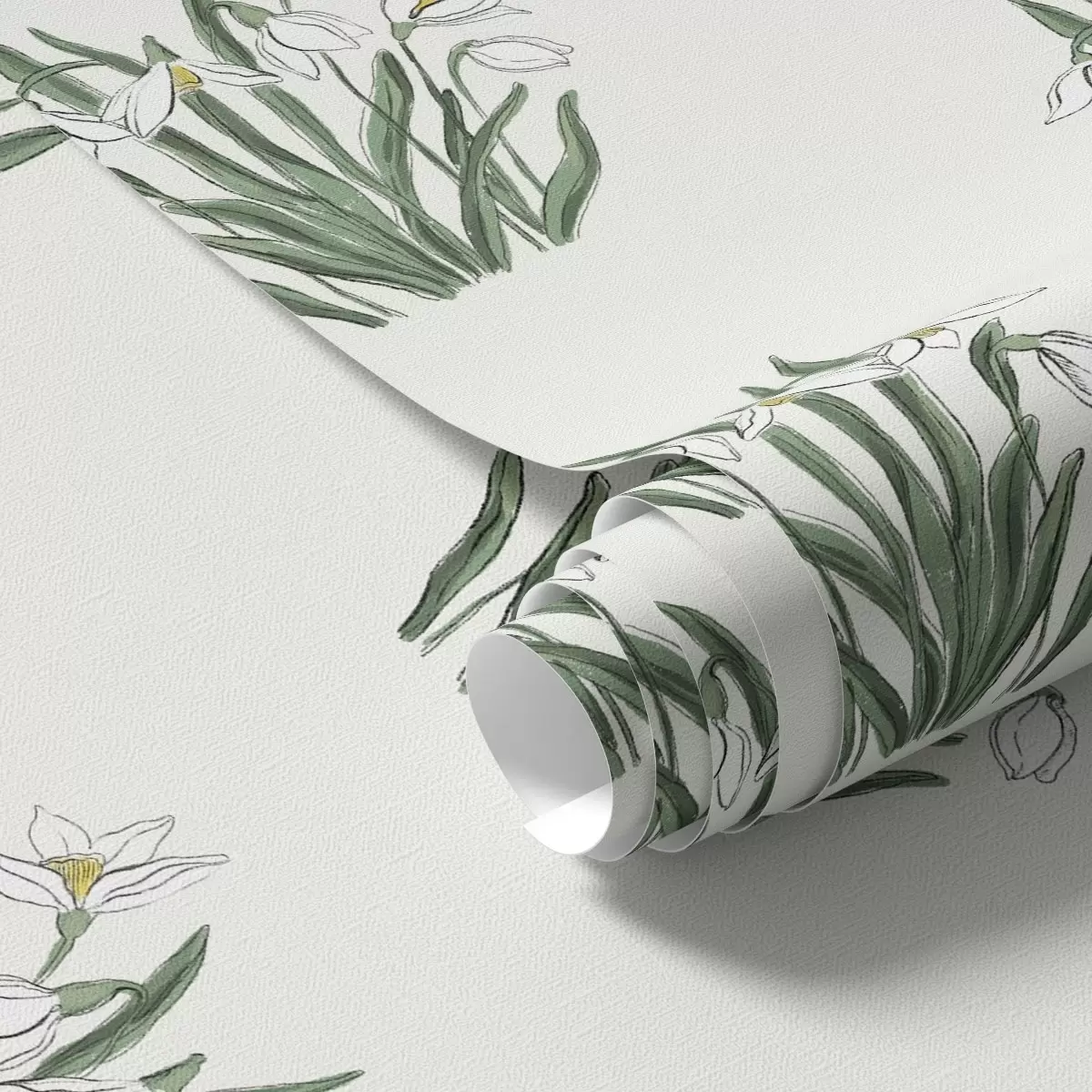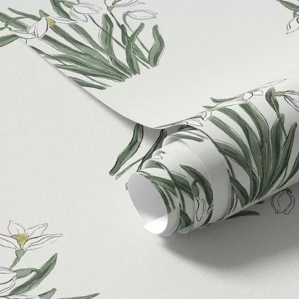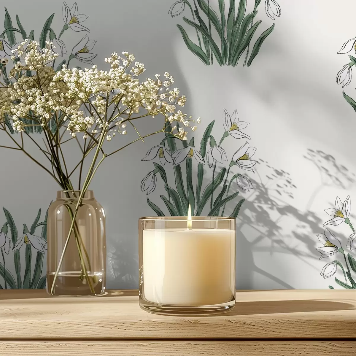 Шпалери Проліски із зеленим листям на світло-сірому тлі Nr. a00651v1